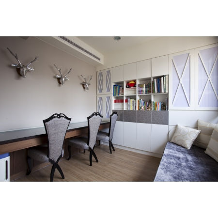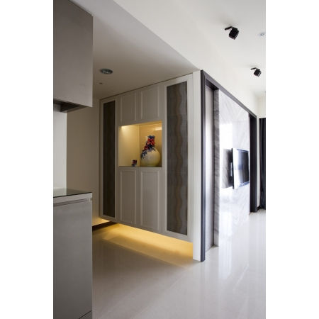 關於這座融合現代與新古典風情的大宅規劃,除了精緻現代古典的風格定義非常出色外,豐富卻低調的收納設計,更是全宅備受矚目的機能焦點,我們大致保留3+1房的基本格局,僅調整餐廳附近局部隔間來釋放公共空間的大器感,並運用靈活的局部隔間修改技巧,搭配優雅色彩與生動的幾何圖騰、訂製傢具等元素,創造不凡質感與空間連續大面寬的氣勢,也讓屋主的個性品味表露無遺。
