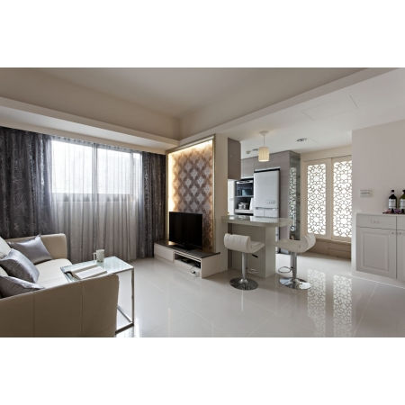 主要建材|馬賽克、石英磚、雷射雕刻花板、明鏡、茶鏡、壁紙、木作噴漆、天然石材、超耐磨地板
