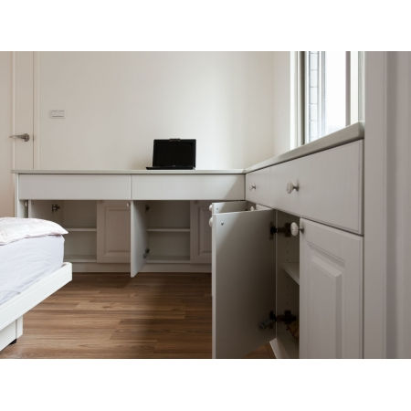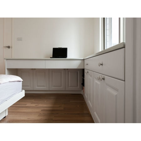 屋主從讀大學開始北上租屋,直到現已工作多年,租屋的不穩定感一直在心上,買房~這個曾經是夢想的事,在努力好久之後實現了..。雖然是20年在新北市的舊屋,但還是興奮又期待。於是這個舊屋改造的大工程,我們一定要使命必達,為了也讓在南部的家人北上探視可過夜同住,在這室內面積僅約16坪左右的迷你住宅中,完成每一個空間多功能利用及超強收納是最基本的需求,於是開始了種種大改造..利用牆面互補退縮、重新配置隔間、動線的方式,包括加大浴室與主臥室,廚房改為開放式,相鄰小房間隔牆退縮規劃成多功能和室等等,讓空間感明顯更寬敞,質感更精緻,機能也更有彈性,生活的情趣自然跟著源源而來。