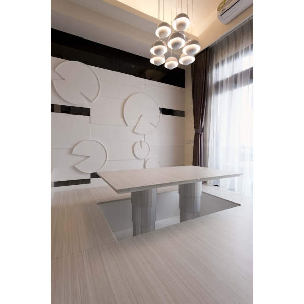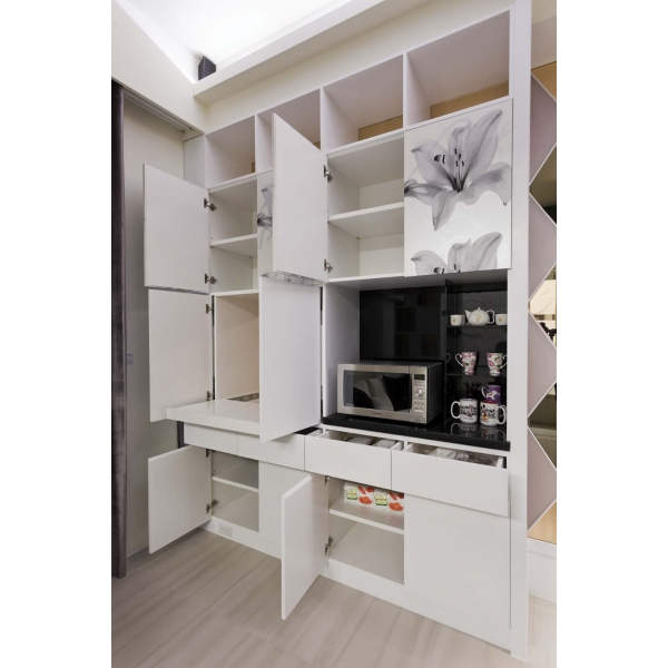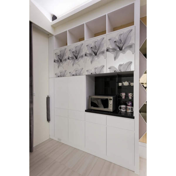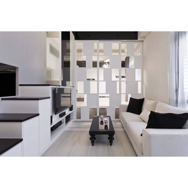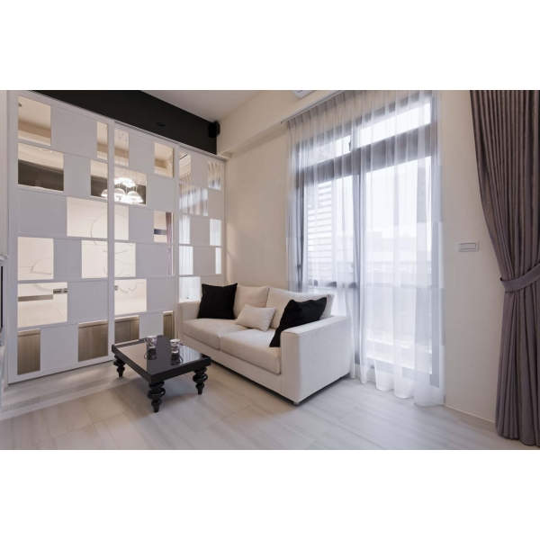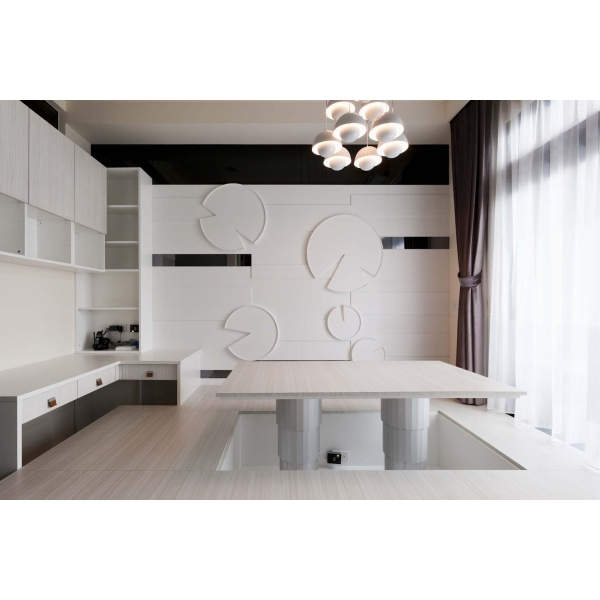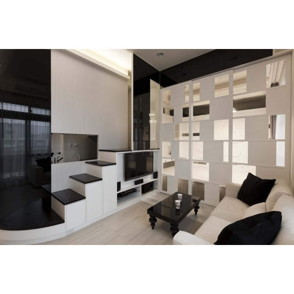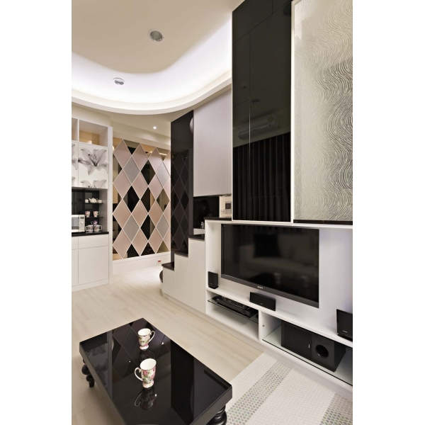 主要建材|茶鏡、木作噴漆、超耐磨地板、烤漆玻璃、美耐板、雕刻飾板、珠光馬賽克