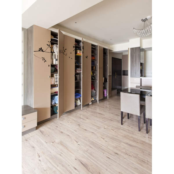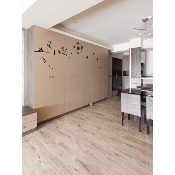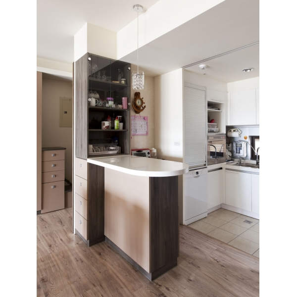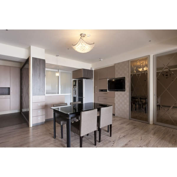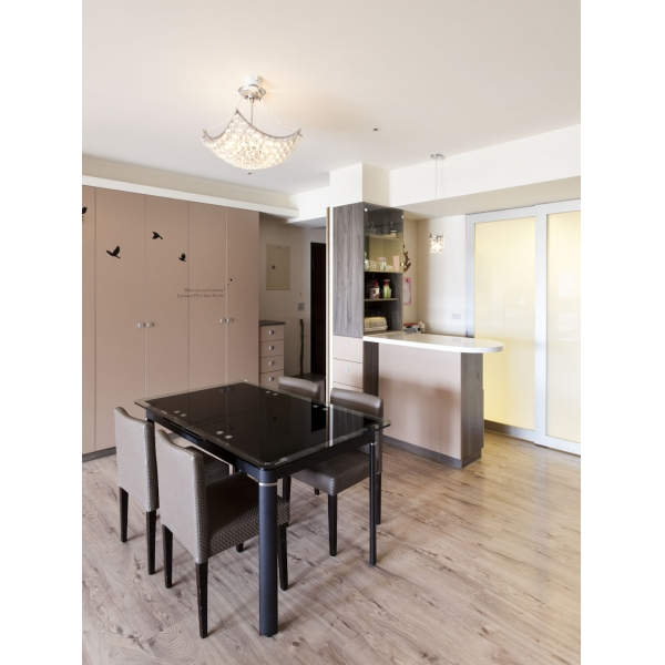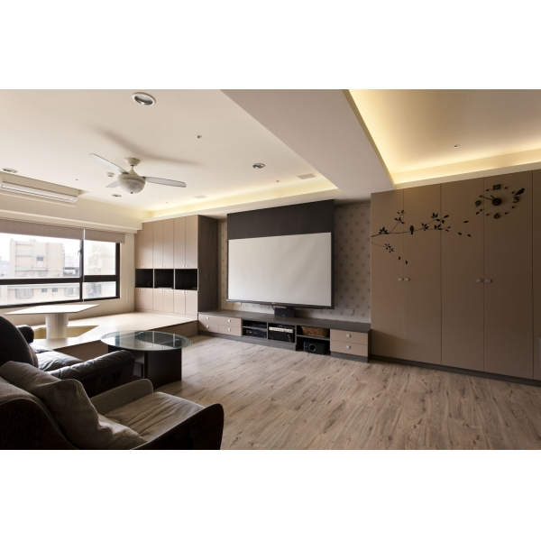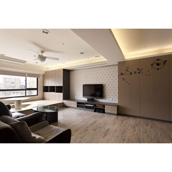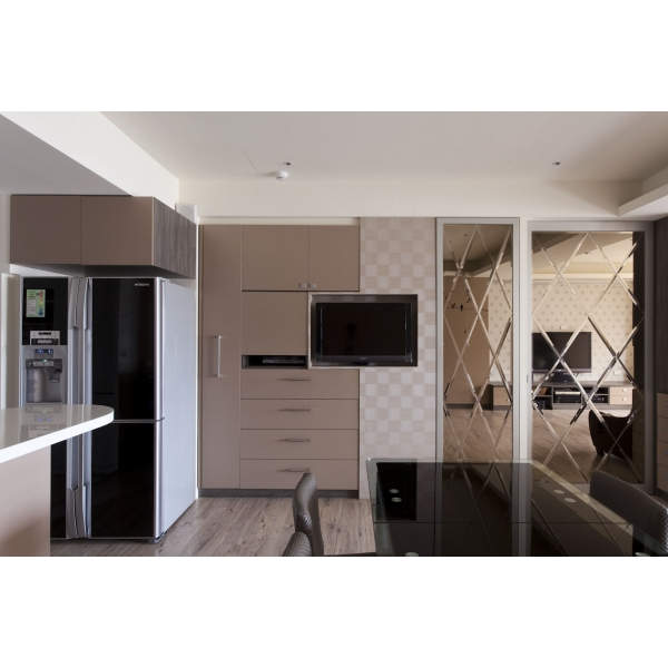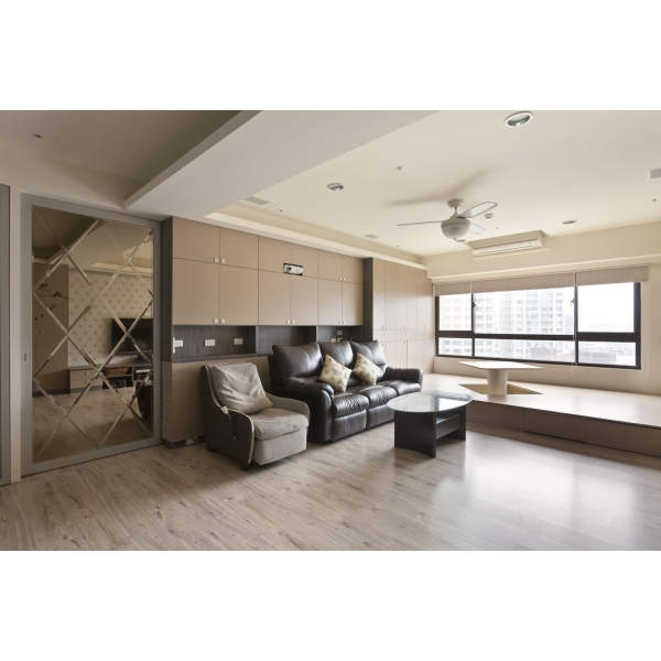 主要建材|茶鏡、石英磚、壁紙、系統櫃、超耐磨地板