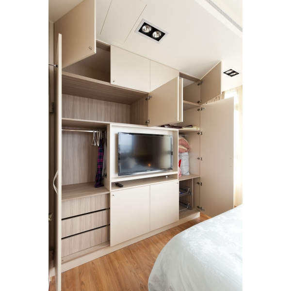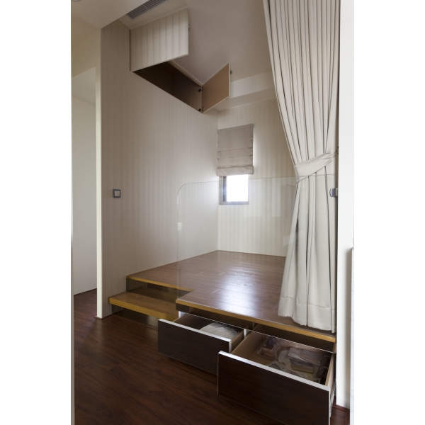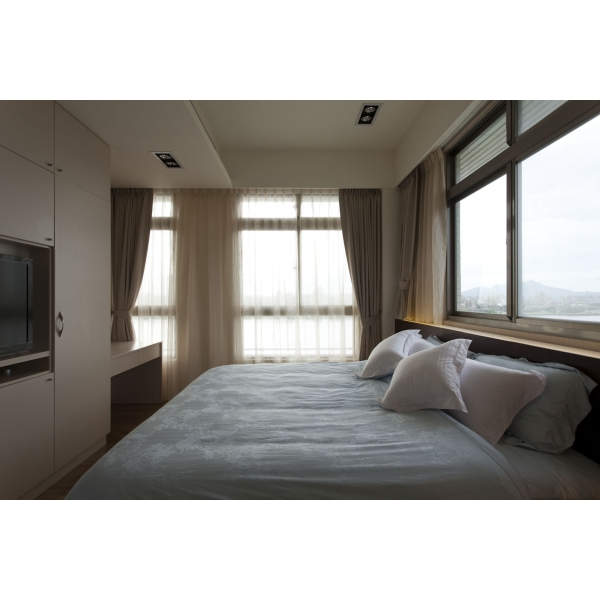 屋主找了我們時説了一句重要的話”房子雖然很小格局不好,但仍然想要有寬敞大器感”,因著這句話,我們完成了這個作品。許多建商為了銷售順利,往往會在空間格局上大作文章,像這間僅19坪的屋子,原始平面居然隔成了三房,不但公共空間很狹窄,每個房間也都小得離譜,屋主也是交屋後才發現建商給的格局,和想像是天差地遠,但因為房子收納了河邊美景,屋主不願放棄,所以重新規劃是雙方溝通後確定的方向,考量家庭成員簡單,首先我們拆除一房,把空間均分給客廳與主臥室,接著將客浴移到主臥浴室旁,原來浴室邊的小房間改為半開放,打造一處可兼做休閒和室或客房的多功能空間,改造完成後;整個視野豁然開朗,展現超乎想像的寬敞大器,屋主開心我們滿意。