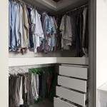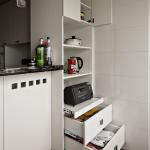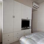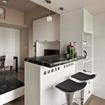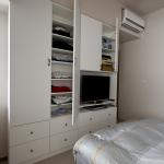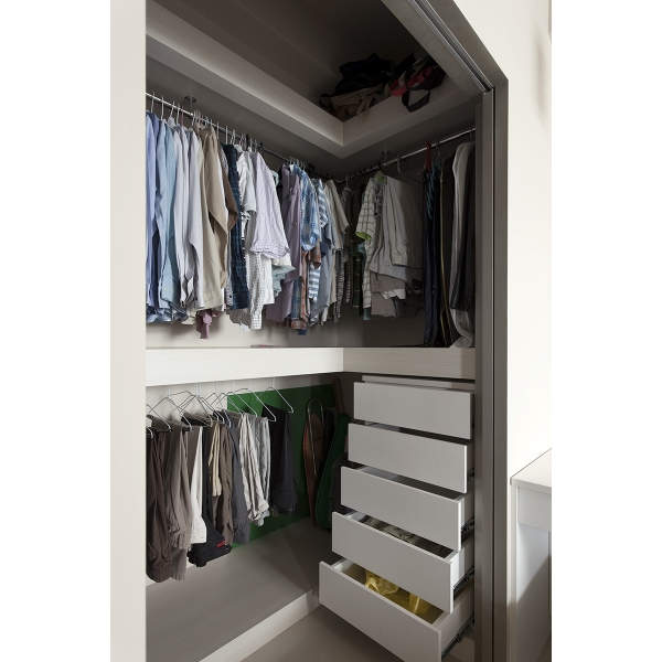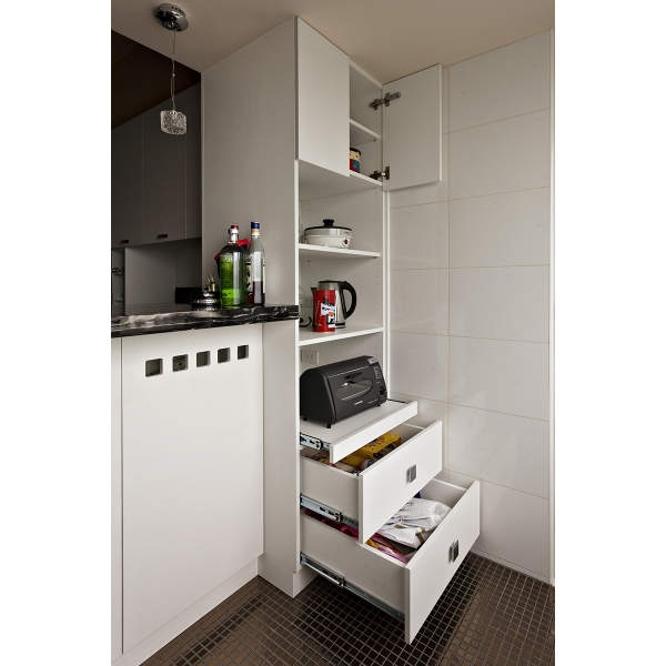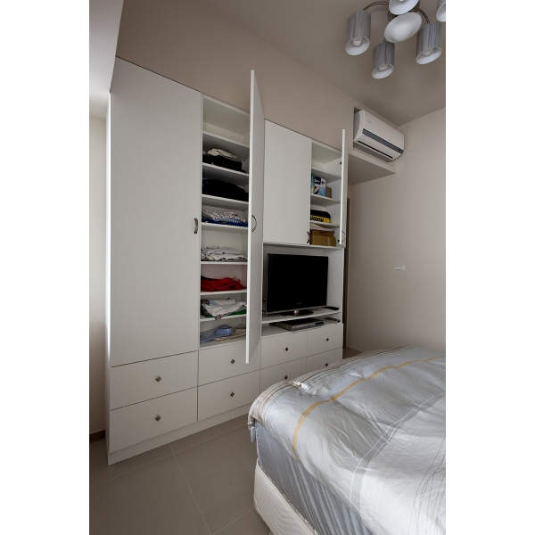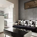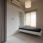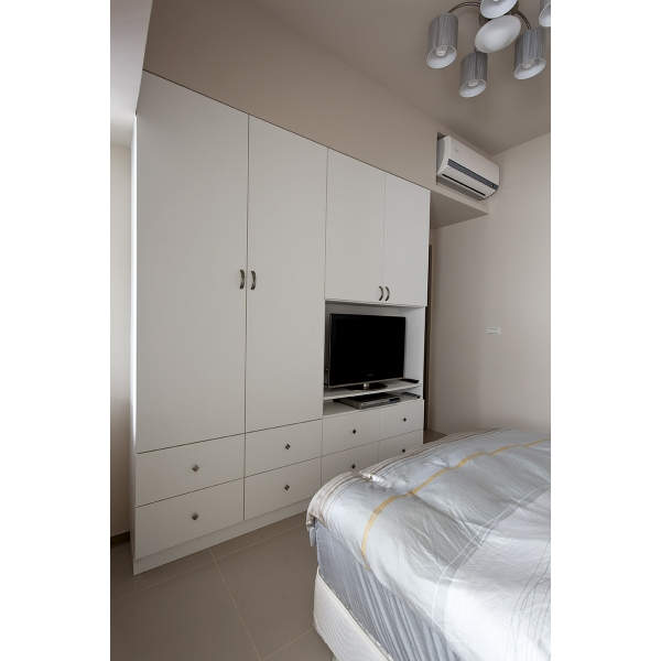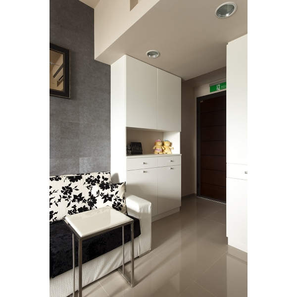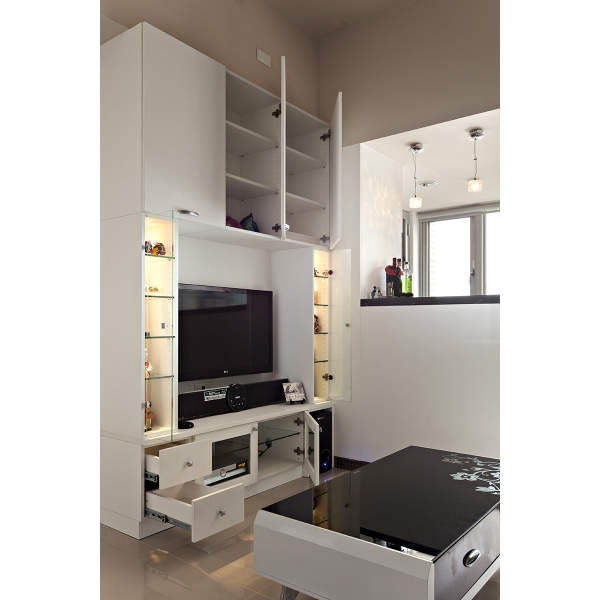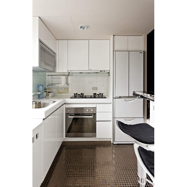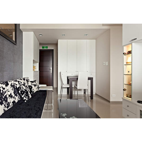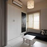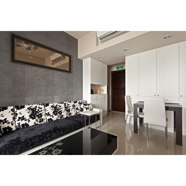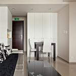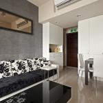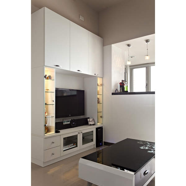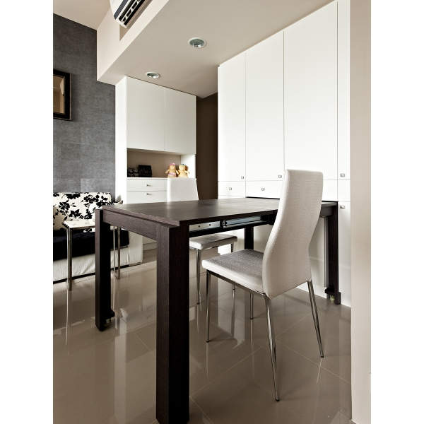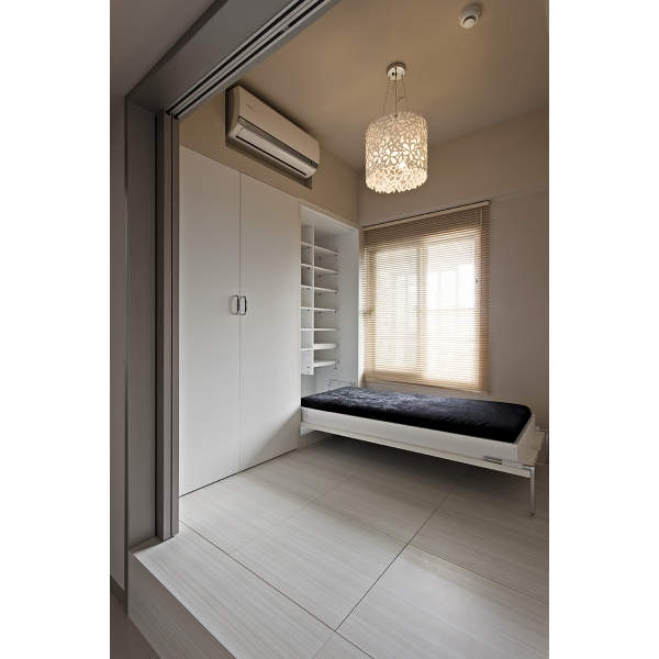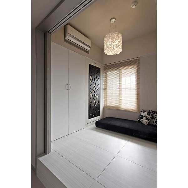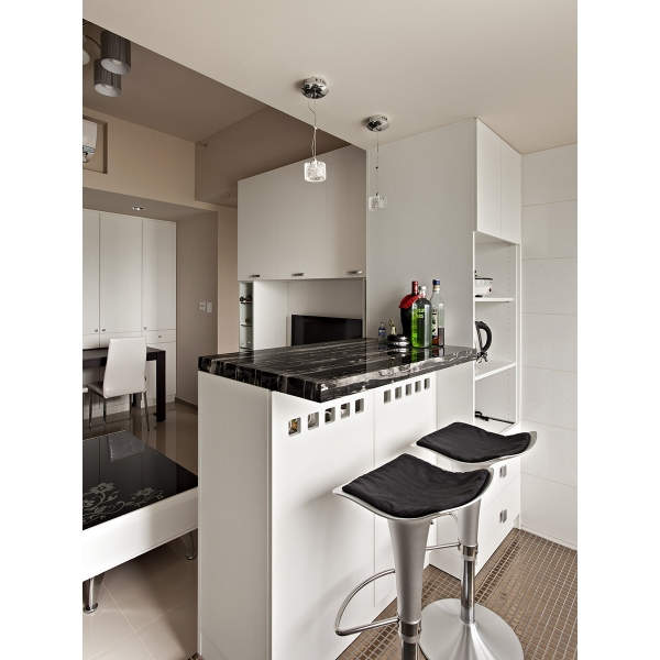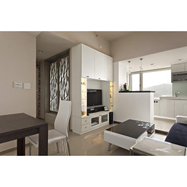 空間設計者最重要的使命,就是要解決各式各樣的空間問題,而隨著使用者不同,每個個案都會有不同的應對方式,在這個兩房格局、僅僅17坪左右的屋子裡,我們首先拆除廚房局部隔間牆,改以半人高的吧臺來取代,好讓客廳也能欣賞到廚房窗外的美麗山景,電視牆後方的和室,也以對開造型玻璃拉門方式增加光線與穿透感,主臥室內則將浴缸位置改為更實用的書房,搭配小坪數住宅中不可能有的專屬更衣間,漂亮完成屋主所期待的每一樣需求。