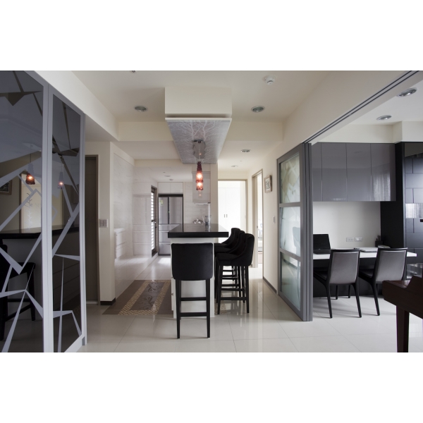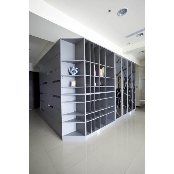 色彩是空間的魔術師,若再搭配線條與特定圖案的交錯變化,不僅能詮釋空間獨一無二的視覺美感,也能表現對應屋主喜好的個性風格,就像這處相當有特色的住宅規劃,僅僅微調部分隔牆就營造出流暢、輕快的室內動線,同時還能保有充裕四房的機能性,因為幾乎不動隔間,無形中也省下一筆預算,尤其是巧妙運用建物先天畸零區塊的技巧,打造出從玄關向公共空間延伸的灰藍色系幾何立面造型,整合令人稱奇的裝置藝術與生活機能,讓一進門就有眼睛一亮的新鮮感。