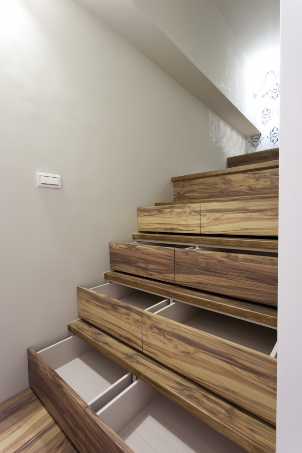 上、下樓的每層踏階打開來,都是實用又輕便的收納設計。