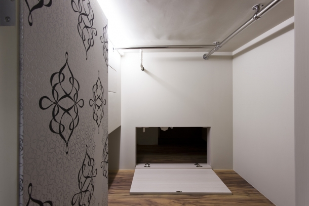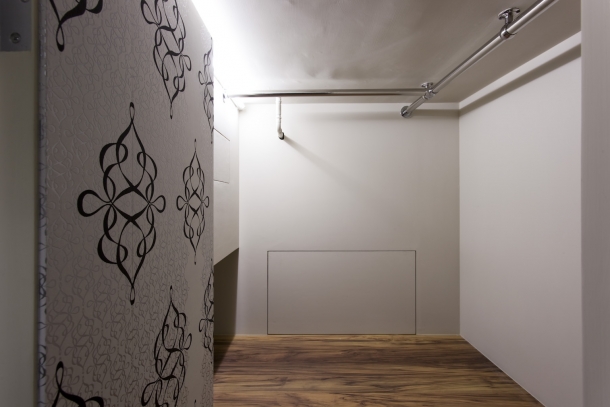 善用夾層的畸零空間,並搭配金屬吊架等機能五金,創造附屬更衣間的機能性。