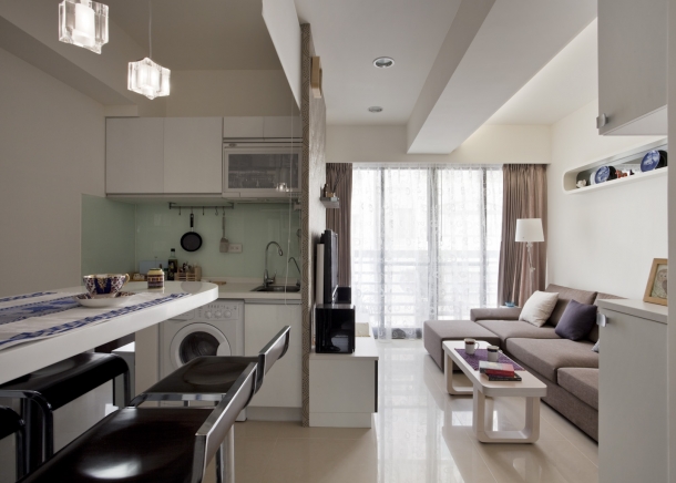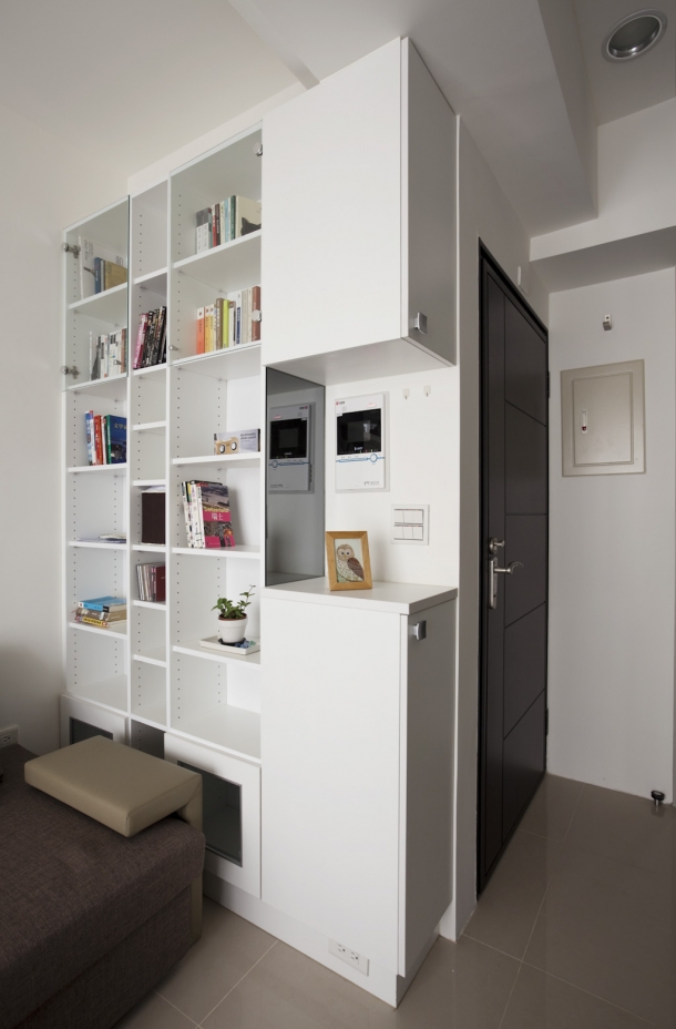 許多新建的集合式住宅,為了降低總價吸引買氣,經常會推出許多小套房產品,不過這些小套房扣除公設後,可用的室內面積多半所剩無幾,如果具備挑高條件,設計師還能利用部份高度發展生活機能,若又只是一般樓高,還得滿足一般住家必備的生活機能,其中的挑戰性不言可喻。本案屋主就是買下兩戶相鄰的小套房來進行二合一的改造,不過就算是兩戶合併;室內總坪數也僅有10坪左右,如何創造開闊的空間感與豐富的起居享受,祕密都在以下的圖片說明中!