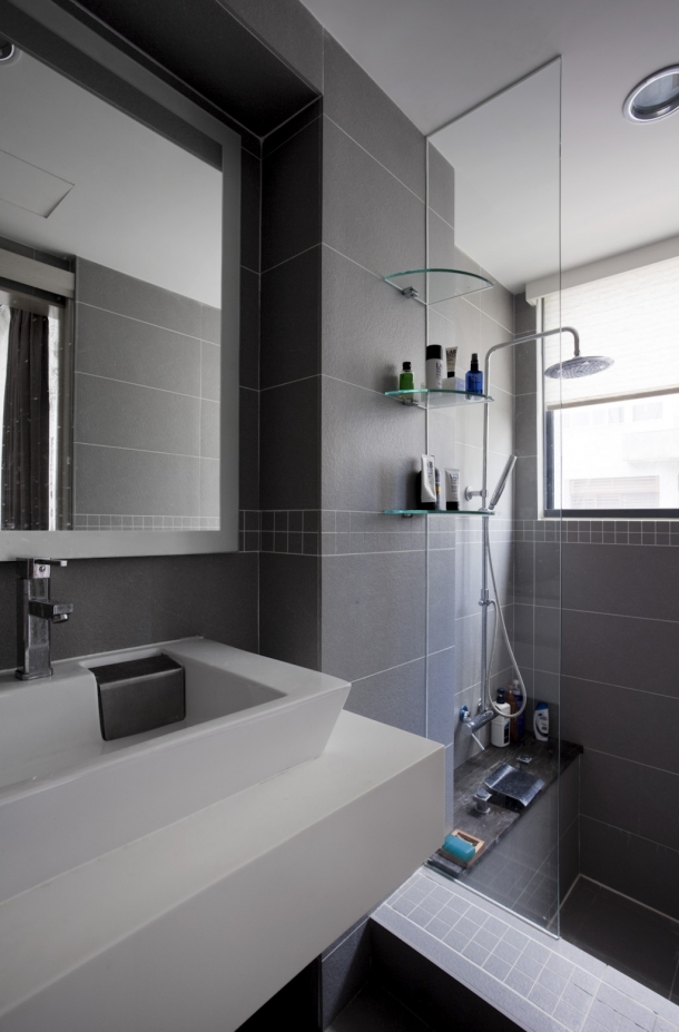 配置四方梯形面盆與加大鏡面的精美浴間,並有舒適的浴缸與淋浴機能。