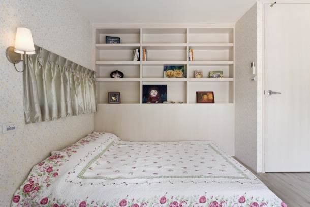 與主臥室共用櫥櫃隔間的次臥室,簡潔清爽的空間感格外宜人。