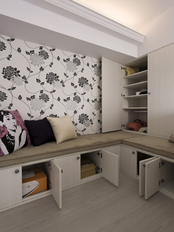 休憩區除了氣氛舒適,兩側與軟榻下方皆有豐富的收納設計,滿足多樣化的儲物需求。
