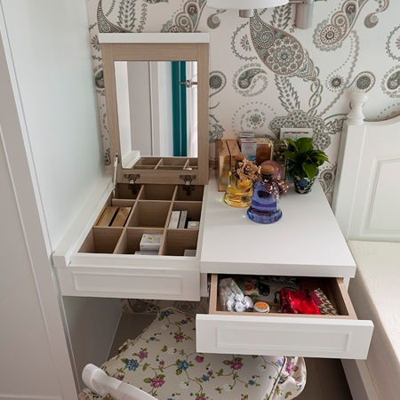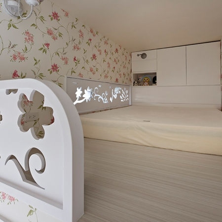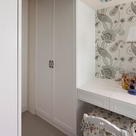 一家三口都愛法式莊園風,即使房子小也想有自在寬敞的感受,屋主希望我們營造如電影場景裡總是讓人忍不住著迷,美淪美奐的畫面,希望在每一天的生活中真實上演又希望每個人有自己完整的空間,無論是睡眠或讀書或公共區域都要舒適,因為高難度,所以…屋主找了我們,我們接手此案後,積極善用空間挑高的優勢,除了部份高度保留給客廳外,其餘分別規劃出2間臥室、書房、更衣間、客廳及媽媽愛的廚房等生活機能,為了讓屋主生活上更加舒適,還有許多不可或缺的收納巧思,讓這12.5坪左右挑高住宅,搖身一變成為風情萬種的法式風尚宅!