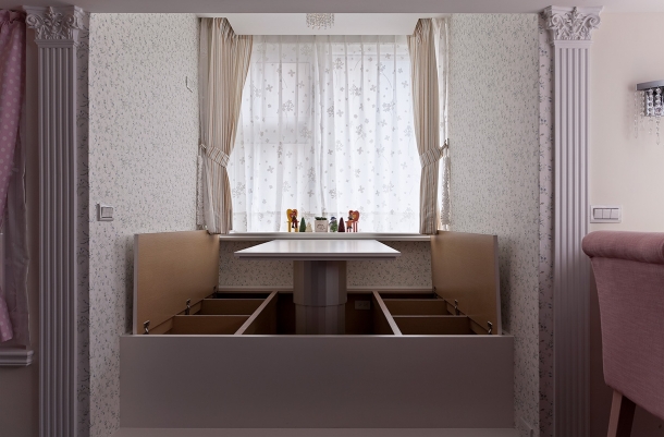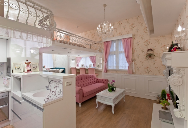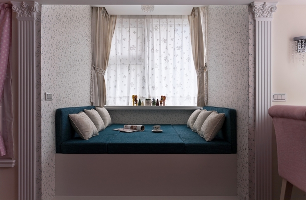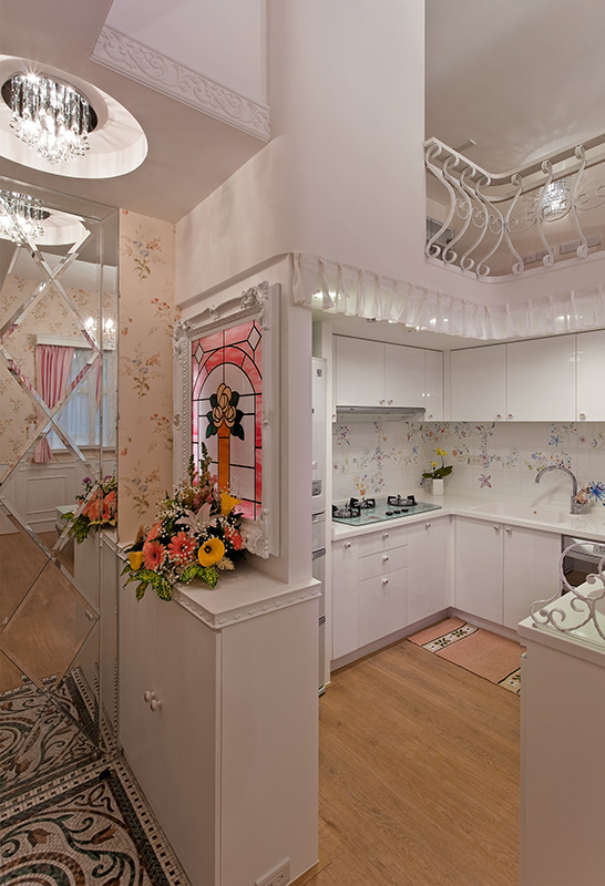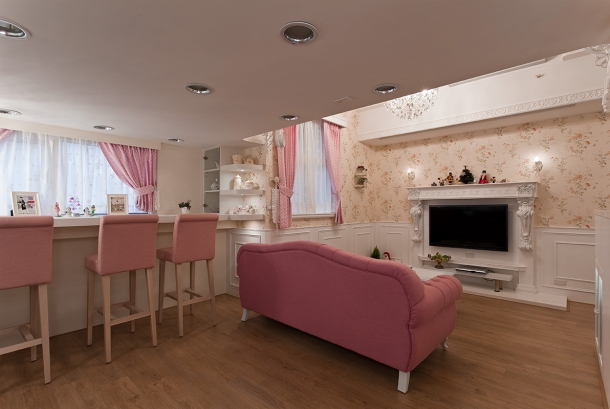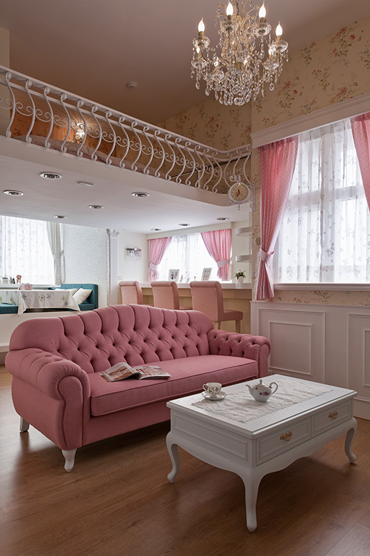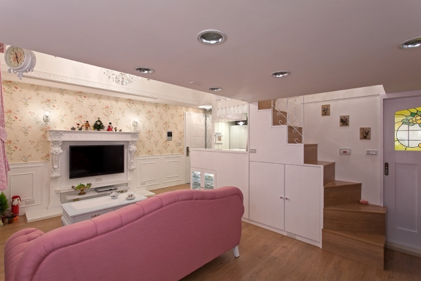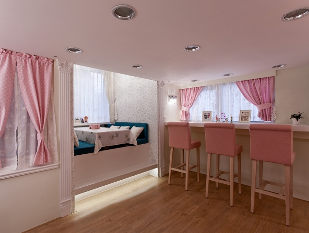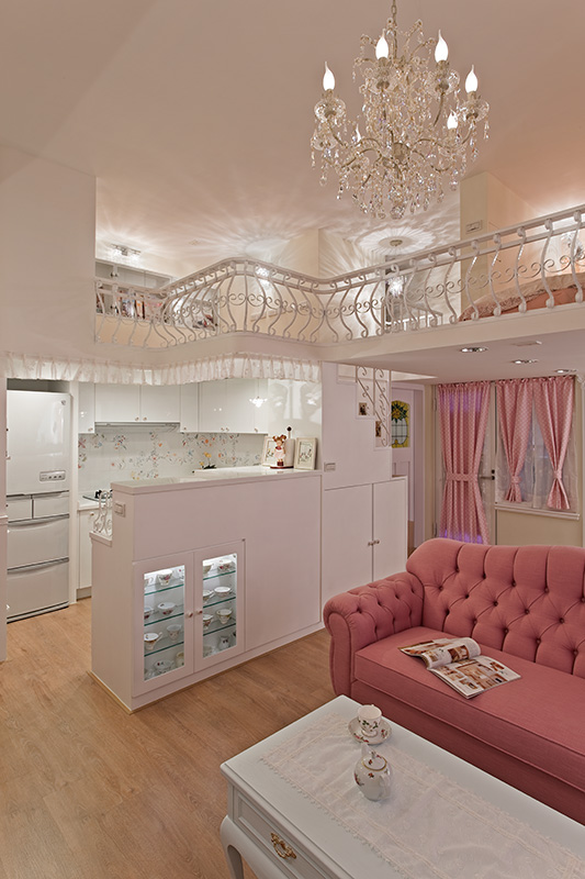 這是一對疼愛女兒的夫妻前來委託的個案,因為女兒要回台灣工作,老家在中部的他們,想讓在北部工作的女兒有溫馨的小窩,於是請我們為這12坪的小套房精心佈置成娃娃屋。甜柔浪漫的粉色系與精緻細膩的古典語彙交織如夢似幻的情境,完工交屋時夫妻及甜美的女兒都超滿意!