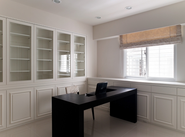 純淨高雅的書房準備了充足的收納設計,清爽的空間感很適合獨處、冥想、閱讀。