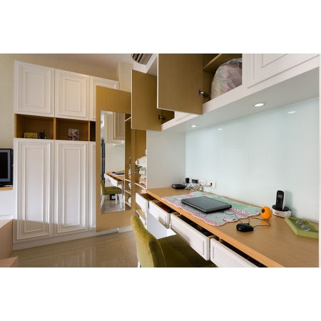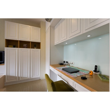 當初男屋主找我們時就很開心的告訴我們,結婚就應該給太太穩定的有歸屬感的家,就算房子不大,也希望房子的每一處都是太太喜歡的,所以我們著手完成了這個作品。與屋主細細討論實際需求以安排格局、動線,光是省下的拆除費用就很可觀,也能讓16坪的空間展現超乎想像的寬敞與多元性。在整個空間的空間的規劃上,我們以明亮的白色系放大空間,硬體或立面造型則穿插簡化的古典線條,帶有鄉村風的設計增加視覺的柔和度與精緻休閒感,最重要的收納則巧妙融入各個空間,創造令人驚艷的美麗境界。