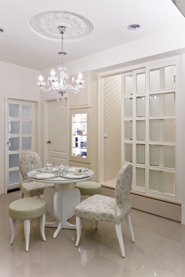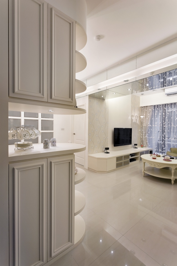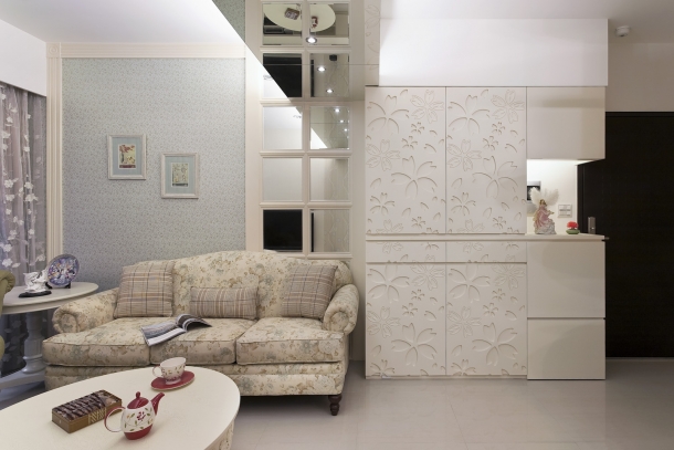 屋主告訴我們,天天辛苦的上班,只希望回家可以完完全全的放鬆且走到那都愛的家,好不容易買了一個新家,希望它就是這樣的地方。開始為屋主設計房子時就發現屋主看似幹練的外表下,其實有著浪漫的心,於是我們有了更多的空間完成這個設計,依據屋主不動格局的要求細膩安排,淡雅的用色與重點式的線條、圖騰語彙,打造主人喜愛的明亮、輕盈、浪漫的微量古典風格,滿足必要的生活機能與視覺美感之外,更讓新居迷人的丰采跟屋主的氣質更貼近。