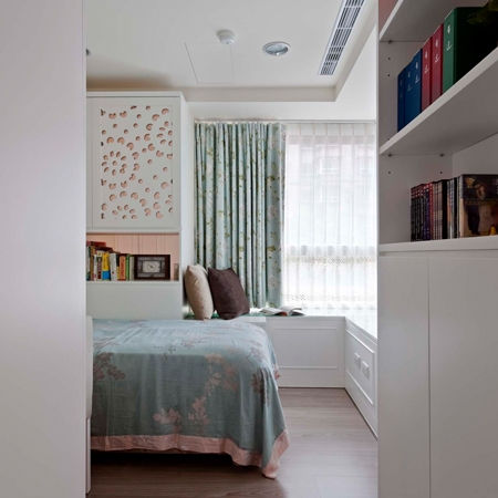 室內面積僅僅25坪,要輕鬆地放進三房兩廳的確不容易,最初屋主的想法是:現有空間不夠大,如果前提是讓一家四口都能住得舒服,真沒辦法就讓目前讀大學的兩個女孩共用一間房,畢竟扣除全家人共享的公共空間外,再塞進三房實在有難度,房門多開開關關動線跟視覺上都不優。
