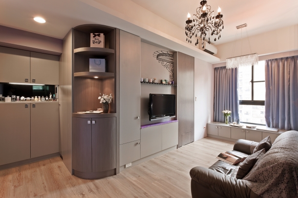 空間設計最初也是最主要的目的,就是為了協助人們解決居住空間內大部分的問題,而生活在無比擁擠的都會區,空間的狹小已經是普遍的狀況,如何在極有限的使用坪數裡,獲取最大的空間效益與舒適性,就是我們針對這個僅僅8坪的迷你住宅積極探討的課題。因為坪數小,空間的分配與機能整合就相形重要,既然橫向發展受限,那麼室內高度的極限利用,就成為規劃收納的重點,再佐以適當的材質與軟件,成功打造一座顛覆想像力的精緻小豪宅!