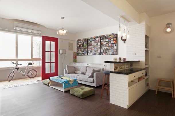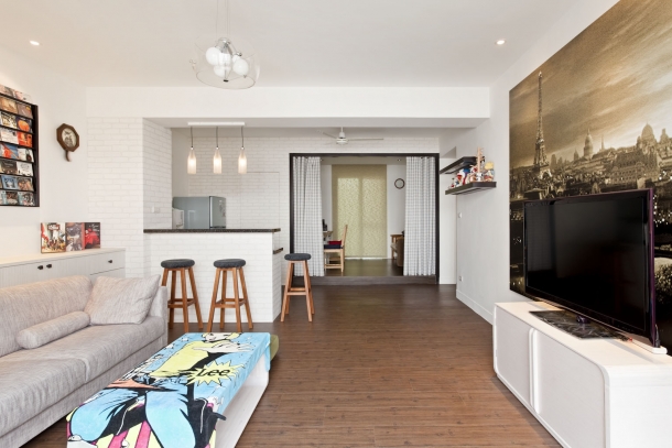 帶點慵懶與復古氣息,宛如復刻紐約舊街區的Loft風情,是許多電影最愛的場景,現實生活中這樣輕鬆又有個性的美式家居,同樣是很多人的夢想,而透過我們的精心規劃,搭配局部格局調整,在有效支配預算的前提下,包括將原先L型的廚房加陽台工作區段開來,以利各司其職,夾在兩房之間很窄小的1.5套衛浴,合併後重新改造為一間機能乾溼的寬敞浴室,打造一座主題鮮明的人文空間。