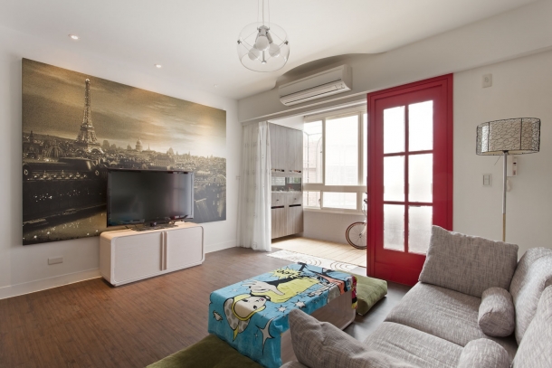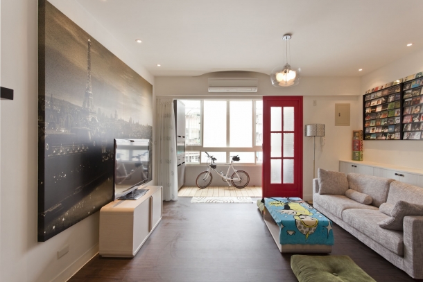 客廳主牆十分簡潔,一幅描繪巴黎市區的灰階大圖輸出影像,延伸視覺的深邃與想像力,也為整體氣氛定調寫意的人文氣息。