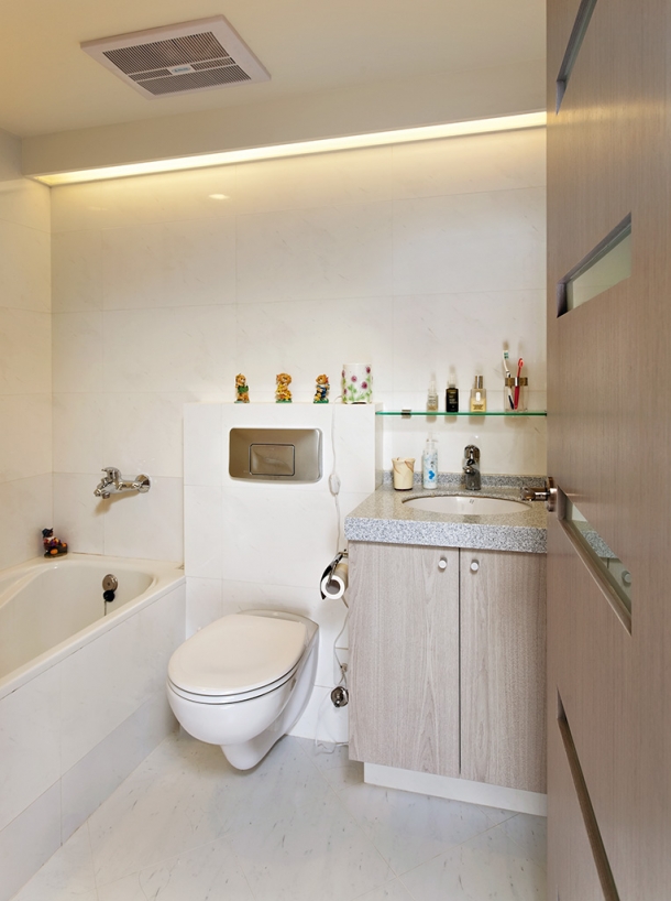 主臥室的浴室設計,善用空間邊緣規劃柔和光帶,潔淨的空間感提供舒適的洗浴享受。