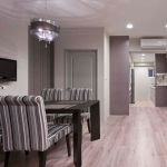 使用建材:木作、壁紙、超耐磨地板、雕花、系統櫃、木紋磚、繃布