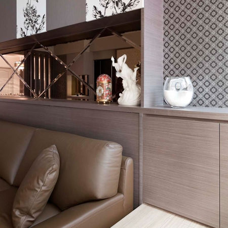 傢俱軟件精心挑選,展示層板展示屋主收藏,充分彰顯空間使用者的涵養及生活情調,人文品味高雅卓然。所有的色彩、展示平台、裝潢材質、隔屏線條全因應風水需求而成。