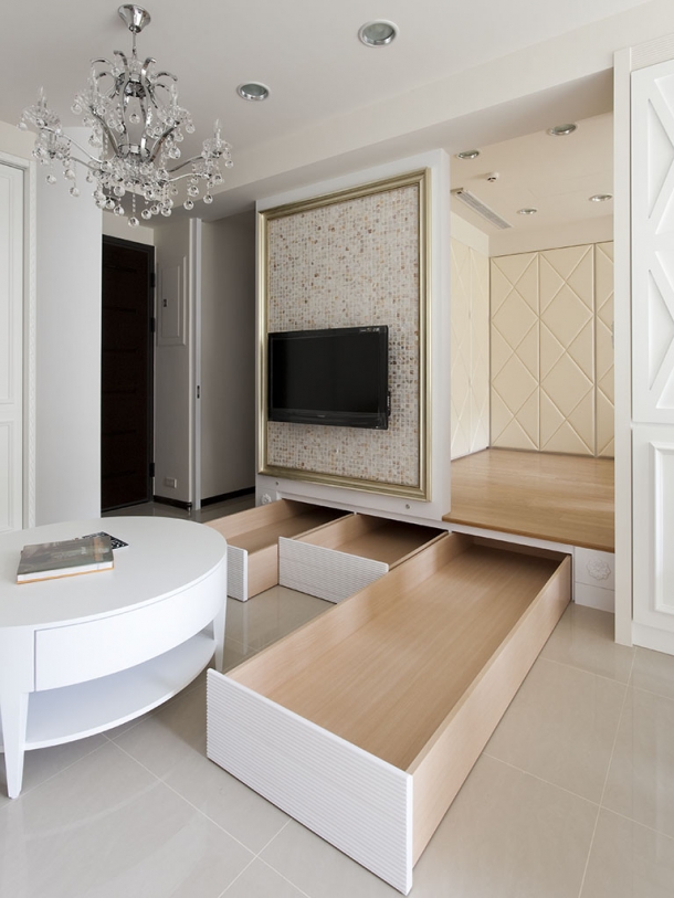 客廳主牆下方利用架高地板的深度,規劃出三個深度驚人的大容量拉抽,發揮驚人的儲物效益。.jpg)
